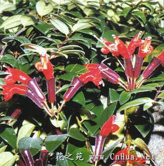 口紅花是近幾年引入我國的優良的垂吊植物,其花葉皆具較高的觀賞價值。
