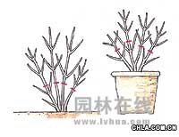 庭園地栽的情況下,在植株的1/3處修剪;盆栽的情況下,在植株下部30厘米處修剪。