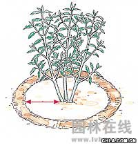 在植株的周?chē)趯?0厘米、深10厘米的溝,施入長(zhǎng)效性的有機(jī)肥料。