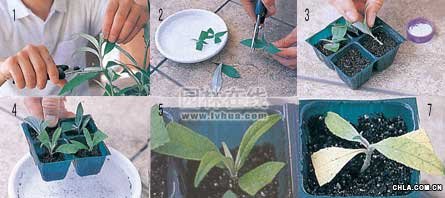 ②保留最上部的2片葉子,其余的葉子剪去一半,浸水1小時(shí)左右。
