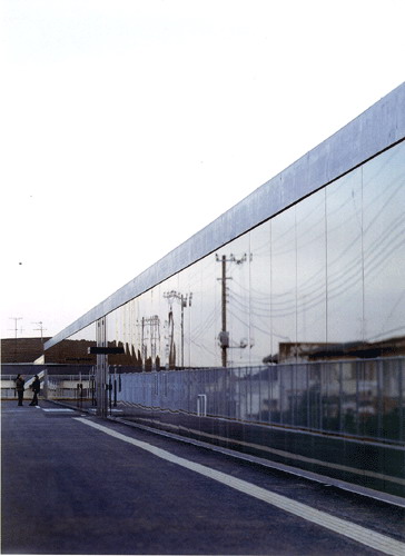 妹島經(jīng)常運用透明的物質(zhì)構(gòu)成交錯的空間,把人們從對建筑空間的慣有體驗和透視觀感中解放出來。她的外墻純凈但是材質(zhì)豐富,有點象女性的肌膚,有彈性,甚至有些性感。在外墻上她經(jīng)常使用鋁板,打孔的不銹鋼板和玻璃。特別是對玻璃的運用有其獨到之處,她經(jīng)常采用透明的,磨砂的,尤其是貼膜玻璃,使人觀看外面景物有種陌生,虛幻和變形的意味,有一種預(yù)言又止的曖昧在里面,充滿了日式的精致與淡淡的惆悵。就象是川端康成的小說“那種寂靜的美似乎把時間都凝固了”。(圖16)