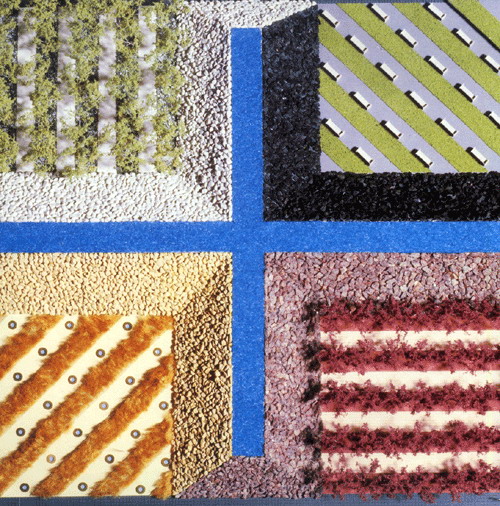 在這個屋頂庭園局促的空間中,園林和植物的生物屬性被抹去,變成一個假象,而白沙被涂上綠色??綠色的沙子不能凈化環(huán)境,白色的同樣不能。作為一個景觀工作者,瑪莎?舒爾茲對自己職業(yè)意義的困惑和對人類處境的焦慮幾乎是以一種絕望的姿態(tài)出現(xiàn),人們仿佛無處可逃,植物也無法拯救我們,因為他們是虛偽的,和沙子一樣虛偽。