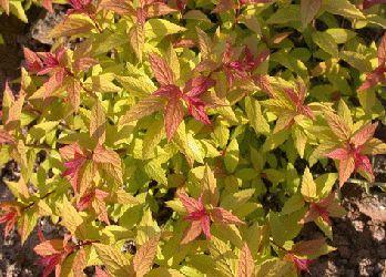 薔薇科,觀葉落葉灌木。樹形圓,矮而緊密,株高0.5-0.6m,冠幅0.6-0.9m。葉春秋金黃色,夏季淡黃綠色?;ǚ奂t色,花期5-6月,二次花期7-10月。性耐寒,不耐積水,宜作地被、鑲邊等材料。