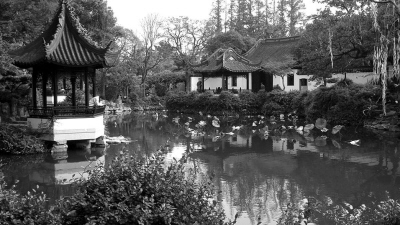 曲水園占地約三十畝,其中水體占15%,以小巧玲瓏、典雅古樸著稱。全園共有二十四景,一石一水,一亭一閣,盡皆成趣。園中銀杏參天,藤蘿繚繞,古木林立,四季花卉長新,園內建筑以青瓦、白墻、青磚構成,樹木枝榮葉茂,花繁果碩,素有“春日櫻桃爭艷,夏天荷花出水,入秋金桂馥郁,冬令臘梅璀璨”之譽,真是“四季名花桂為冠,滿園金栗帶香歸”。