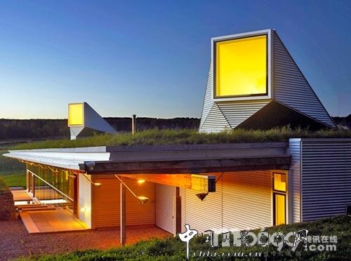 建筑師Ian MacDonald設(shè)計的草地住宅坐落在加拿大多倫多的北部,這是一座現(xiàn)代住宅,設(shè)計非常精致,和周圍環(huán)境融為一體。這座面積3000平方英尺建造在山上的凹處,如果不是綠色屋頂上的入光孔,一般人是很難察覺到這座住宅的存在。
