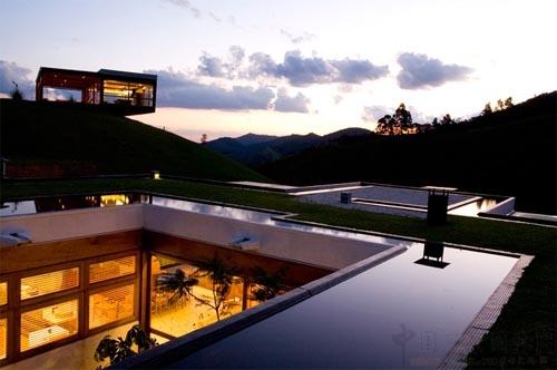 水面似鏡面一樣寧靜,構成了屋頂的一部分,這座由巴西建筑師事務所負責設計的別墅將概念設計演變成了現實。在屋頂有巨大的蓄水池,這些水渠最終都會納入這個蓄水池中。