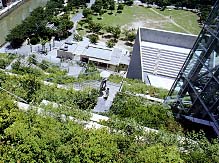 把建筑ACROS福岡的臺(tái)階狀屋頂當(dāng)成一座山體處理,以花鳥風(fēng)月為主題,表現(xiàn)“春之山、夏之蔭、秋之林、冬之森”植物季相變化的空間,使南側(cè)公園的綠化植被與臺(tái)階狀屋頂?shù)幕熘仓脖蝗跒橐惑w。每一層植被由臺(tái)階屋頂植被與栽植于下一層墻體上容器內(nèi)的植被組成,整體上仿佛山脊植被與山谷相連。竣工數(shù)年后植被已經(jīng)郁郁蔥蔥,在城市中央形成了一座綠色的“人工山林”,成為福岡市民娛樂休憩的理想空間。