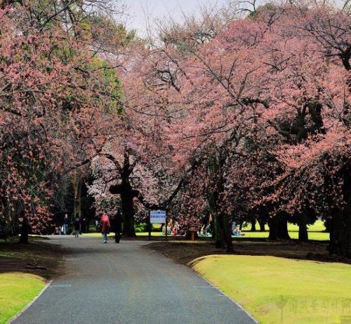 日本的春天是爛漫櫻花的季節,早春2月,新宿御苑的寒櫻便激醒了日本人的賞櫻心情,經3月而入4月,依次盛開的70多類櫻花,分布于園內不同景致之間,或群櫻襯以綠茵,或單株傍水而立,令新宿御苑成為賞花人的天堂,直至賞完最晚開放的“八重紅垂”,日本人一年一度的賞櫻熱情方逐漸平復。