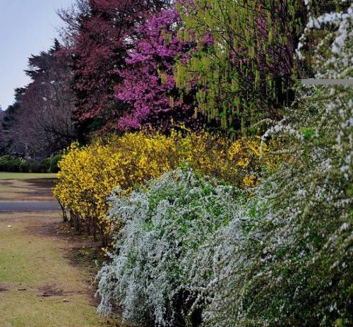 新宿御苑內的櫻花品種多達75種,包括里櫻、染井吉野櫻、山櫻、大島櫻、枝垂櫻等,共有1500多株,其中特殊的里櫻品種如一葉櫻200株,關山約130株、普賢像約100株,都是在日本其他地方少見的櫻種。每年春天三月底或四月初開始,最先在新宿御苑登場的是染井吉野櫻,接下來是一葉、寒櫻、普賢像,最后才是各種八重花瓣的里櫻。