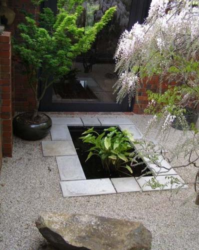 這一庭院池塘設計的小巧玲瓏,即不需要太大的空間,有能夠增添小院的情趣。你可以從廚房或餐廳的窗戶可以看到外面的池塘,設計師建造這個池塘的目的就是創造一種從室內向室外流動的感覺。