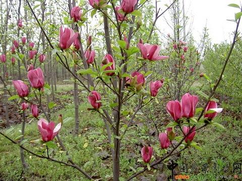 紅笑星為半常綠灌木或小喬木,株形緊湊,冠幅飽滿。小枝綠色,老枝褐色,葉革質,圓狀橢圓形;花蕾長橢圓形,花被片外深紅色,內紅色。春季4月集中開花,6月下旬開始二次開花,并陸續開花直至10月下旬。不結實。染色體數目:2n=3X=57。 花繁多,花期長,長勢旺盛,2年生嫁接苗株高可達1。5m,冠幅1。2m,地徑3。0cm。在西安地區綠葉期長,落葉比其他品種晚1-1。5 個月,在深圳地區為常綠樹種。花繁多,花期長,可用作花壇、花境。