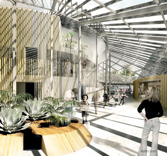 E植物園被命名為“Vaeksthuset”,它的空間吸引校園中的學(xué)生。內(nèi)部圓形的形式是受到自然形式的啟發(fā)。其中的綜合設(shè)施從花園提供辦公場所和咖啡館。