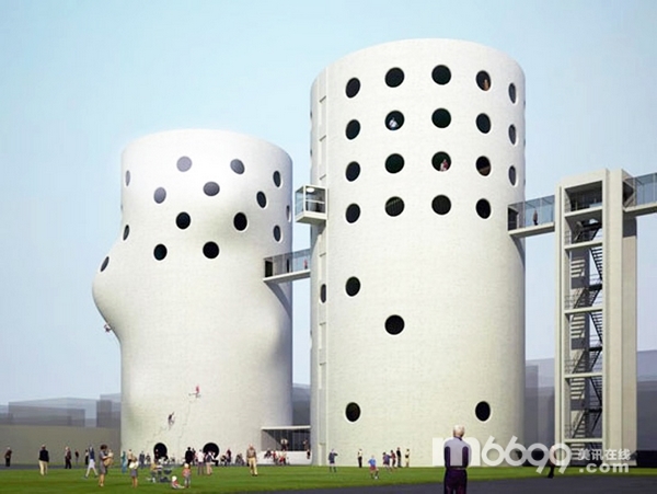 料倉是很多大型的建筑設施,在廢棄不用的情況下,拆掉很可惜。因此當有了兩座廢棄的料倉時,阿姆斯特丹人民希望將它們改造成有意義的建筑。NL建筑事務所將對兩座料倉進行了回收利用,改造成了攀巖場。人們可以在自由攀巖。