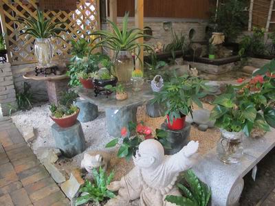 在古道園藝,隨處可見石雕、木雕和各色植物,曾總笑說,“我喜歡擺弄這些東西,不僅銷售還喜歡收藏,在我眼中,他們都是有生命的,有自己的獨(dú)特個(gè)性的,掌握了他們的特性,在設(shè)計(jì)中將他們最美的一面展示出來。”是的,從水景噴泉到植物搭配,從假山景石到木質(zhì)結(jié)構(gòu),從涼亭花架到風(fēng)水玄冥,曾總都有著自己的設(shè)計(jì)理念和施工經(jīng)驗(yàn)。“作為一個(gè)設(shè)計(jì)師,我不能說是‘八面玲瓏’,也可以說是‘面面俱到’了。”曾總笑道。一個(gè)好的設(shè)計(jì)師必須掌握植物、材料等各方面的知識,才能恰當(dāng)?shù)剡\(yùn)用到設(shè)計(jì)中去。一知半解只能造成材料和人力上的浪費(fèi),達(dá)不到理想中的設(shè)計(jì)效果。