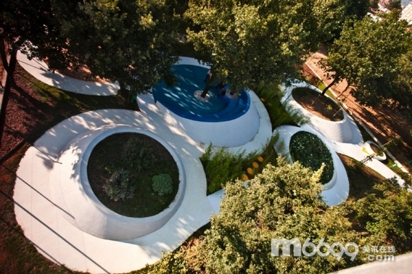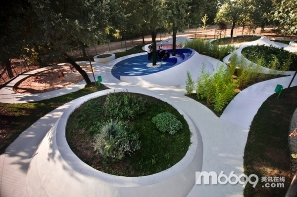 位于意大利弗羅西諾內(nèi)市境內(nèi),毗鄰Corso Lazio的這片區(qū)域終于盼來已等待25年之久的首個公共空間。這個美麗的花園是一個大型總體規(guī)劃的起點,整個規(guī)劃旨在復(fù)興公共空間及服務(wù)性空間并將其并入鄰近的住宅區(qū)。公共區(qū)域的缺乏成為整個地區(qū)發(fā)展的桎梏,并使得鄰近住宅區(qū)的發(fā)展不可持續(xù)。因此花園項目強化了建造一個集有集聚性、趣味性、感官知覺性以及互動親密性于一身的關(guān)聯(lián)空間以滿足社交活動需要的理念,就如同公共領(lǐng)域中的私人起居空間。整個花園在人工與自然元素交錯連接,形成一種張力。