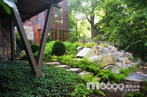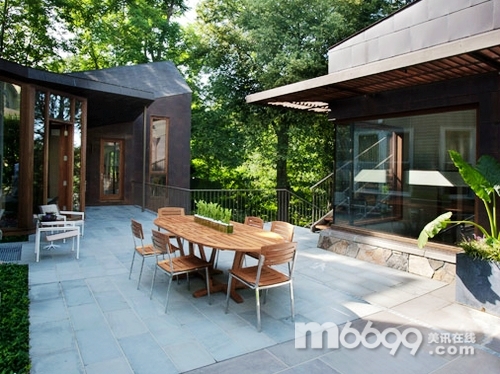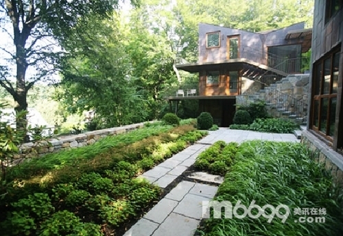 Keith LeBlanc 景觀建筑事務(wù)所設(shè)計(jì)的畔山花園位于馬薩諸塞州布魯克萊恩小鎮(zhèn)。四周郁郁蔥蔥的大量簡(jiǎn)單樹植及鋪砌路面圍出了一系列的戶外露臺(tái),既與原有的房屋相連,又與新建的現(xiàn)代風(fēng)格建筑相通。景觀設(shè)計(jì)既大膽又實(shí)用,在后院架起30英尺高的平臺(tái),以此創(chuàng)造出一系列的動(dòng)態(tài)空間,將整個(gè)景觀建筑整合在一起。并在相對(duì)較小的角落展現(xiàn)出豐富多彩的戶外空間,令人喜出望外。
