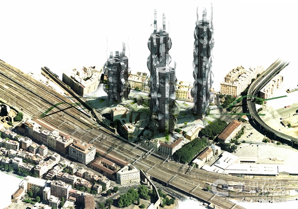 多功能建筑群項(xiàng)目Soundscape Towers包括三座未來主義摩天大樓, 是為位于意大利羅馬圣洛倫索周圍密集的城市建筑中的歷史遺跡設(shè)計(jì)的。讓人們的生活變得更明亮、美麗與和諧正是設(shè)計(jì)師旨在達(dá)到的目標(biāo)。