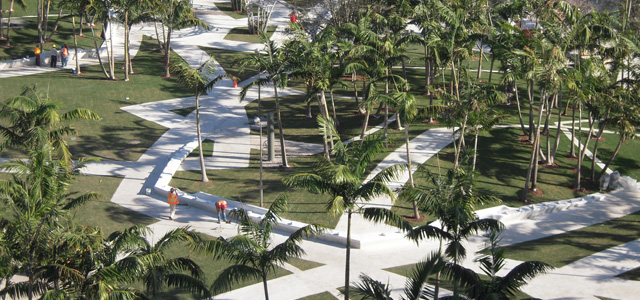 林肯公園位于佛羅里達(dá)州南部華盛頓大道和第十七街,面積略大于1公頃,它致力于建立一個(gè)邁阿密海灘的先例。這樣大小的城市公園往往會(huì)設(shè)計(jì)成硬表面大于軟表面的格局,然而West8在早期就決定了要將其設(shè)計(jì)為可以讓公眾感受綠色并且更像一個(gè)公園的地方,因此林肯公園的位置具體條件、背景和項(xiàng)目引發(fā)了獨(dú)特的反響。