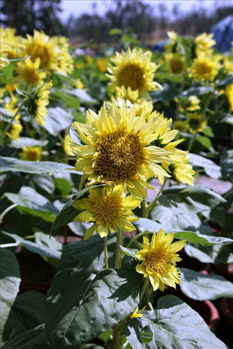 金秋,上海辰山植物園將向市民奉獻以向日葵為主題的花展,此次向日葵展規模較大,栽種向日葵面積達1.5萬平方;品種多樣,匯聚稀有品種總達48個,其中18個品種為國內首次展出。品種‘索拉婭’獲得2000年AAS獎(美國育種大賽),是第一個獲此殊榮的向日葵品種;向日葵‘紅海星’是世界上第一個紅色矮生品種;‘墨池吐金’擁有流蘇狀巨大花盤、花型獨一無二;‘泰迪熊’品種的花蕊完全退化成花瓣、憨態可掬;新品種‘猛犸’和‘椰子糖’是2011年美國育種學家最新推出的品種;‘活力’是最佳的切花品種;此次花展花色齊全:除了常見的金黃色,有橙黃色、橙紅色、黃綠色、白色、酒紅色、墨色、檸檬黃以及紅-黃復色等。花型也非常豐富:不僅有單瓣,還有重瓣,花瓣形狀不僅有普通的舌狀,還有流蘇狀、流線狀等。