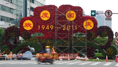 今年國慶,成都中心城區(qū)將呈現(xiàn)姹紫嫣紅、百花盛開的景象。成都市林業(yè)園林局從昨日開始在天府廣場(chǎng)、錦江大橋等地段布置植物雕塑。