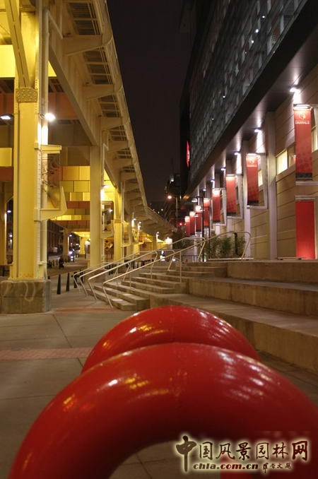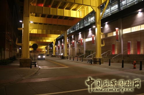 中國風(fēng)景園林網(wǎng)訊 美國肯塔基州路易斯維爾第二街橋(Second Street Bridge)街景項(xiàng)目由CARMAN公司進(jìn)行景觀設(shè)計(jì),萊尼.史溫丁格燈光工程公司(Leni Schwendinger Light Projects)進(jìn)行燈光和色彩方案設(shè)計(jì)。第二街橋下方的道路轉(zhuǎn)變成為一個(gè)廣場——有多種植物,座椅和行人散步空間,可以進(jìn)行節(jié)日慶祝活動(dòng)——上面燈光閃爍的橋頂掩蔽著下方的空間。萊尼.史溫丁格燈光工程公司設(shè)計(jì)的街景包括了沿克拉克紀(jì)念大橋(Clark Memorial Bridge)的輔路和空地。這是一座歷史悠久的懸臂式桁架橋,又稱第二街橋(Second Street Bridge),跨越了美國中東部俄亥俄河(Ohio River)。