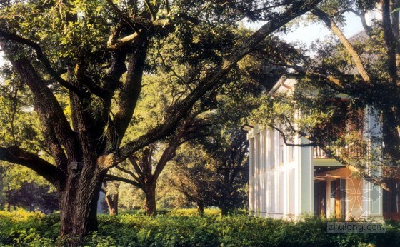 經過綜合考查,與客戶多次協商,景觀事務所結合分析構思了一個方案——別墅的位置與入口道路和進入的空間必須與小湖泊的特色相一致。這樣的安排讓新建筑物和花園儼然一體,花園里種有豐富的植物,包括橡樹和火炬松。景觀設計事務所認為規劃必須涉及景觀(包括植物、花園構造和其它因素)、建筑特色和住宅規模,這樣才能相互融合,相映生輝。