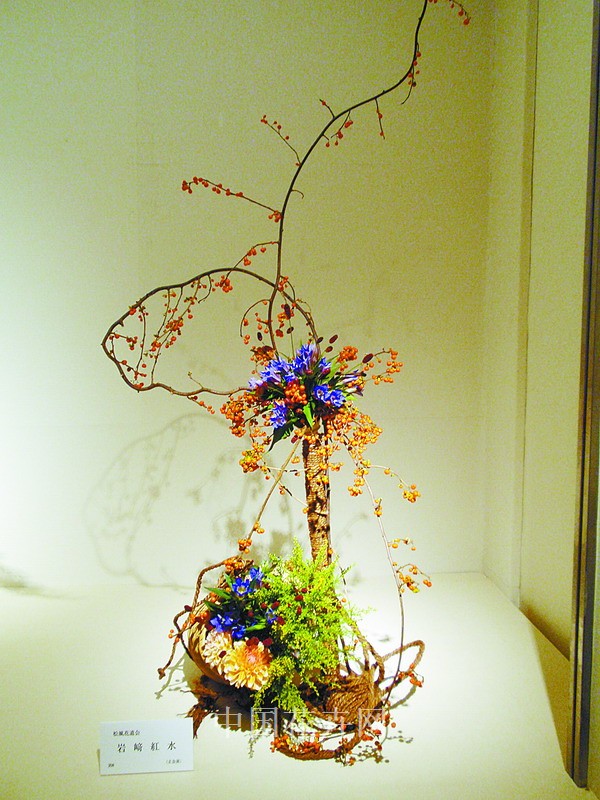 池坊在此次展覽中依然沿襲其傳統古典的風格,插花樣式莊嚴沉靜,富有內涵,盛花和瓶花則自然舒暢;小原流的文人調插花更是深受中國文化影響,靈感來自于中國文學、書畫的詩情畫意,以中國的文人趣味為背景,注重花材的趣味性;草月流花藝不受嚴謹的規則和資材限制,其強烈的藝術氣息和時代感,吸引著年輕一代插花愛好者。