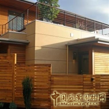 庭院杉柏木墻,下面采用山坡上的石頭堅固