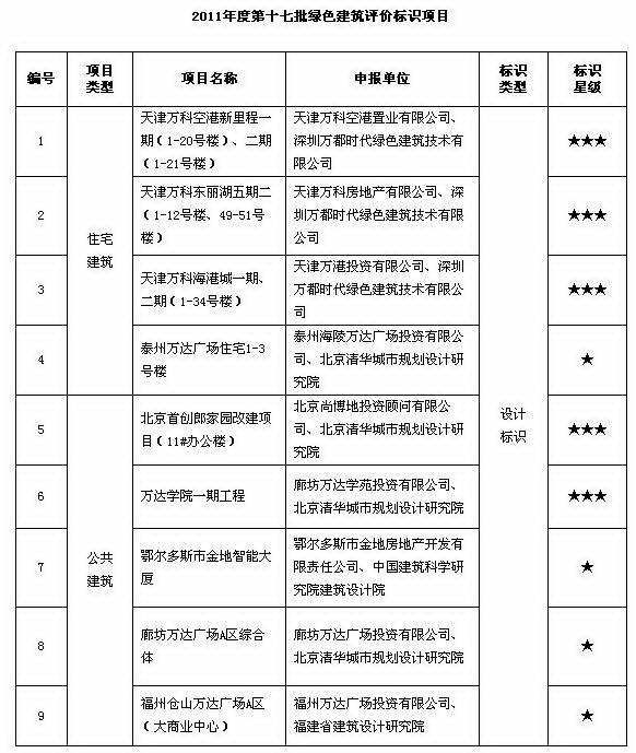 關(guān)于2011年度第十五批綠色建筑評(píng)價(jià)標(biāo)識(shí)項(xiàng)目的公告