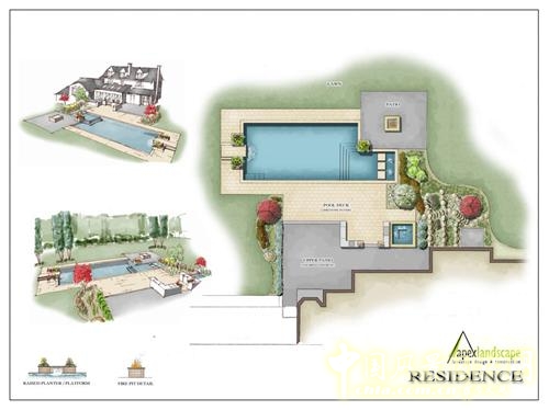 新的庭院設(shè)計(jì)包括游泳池頂端凸顯的黑色水池、圍繞游泳池的環(huán)行臺(tái)、石質(zhì)跳水臺(tái)、戶外廚房、餐飲區(qū)和燃?xì)饣馉t等,是和家人、朋友娛樂(lè)的真正消遣場(chǎng)所,給人舒心、閑適的感覺(jué)。