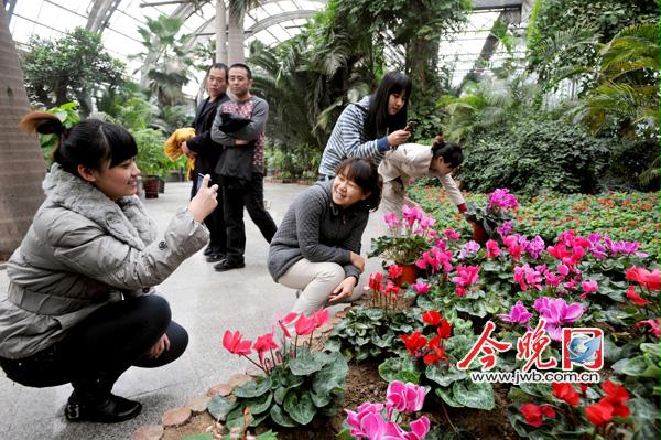 近日,記者從本市熱帶植物園獲悉,熱帶植物園已經著手為農歷新年培育新品種花卉,其中新引進的10余個品種的33000余株郁金香、6個品種的風信子、水仙培育栽種工作已經完成。目前,園內對已經凋謝的仙客來、串紅等花卉進行了重新的栽種及更換。預計明年一月與游客見面。圖為工作人員布置花壇引來游客合影留念。