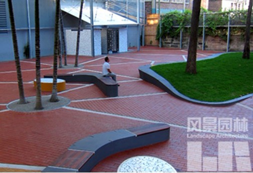 新的公園為公眾提供了以現有的木麻黃樹為檐篷下的一片片草坪,還有新種植的成年馬氏射葉棕櫚樹叢(荷威椰子)和開花的攀援植物。當這些植物成熟時,鄰近那家流浪漢招待所的方格籬笆,就會逐漸變成一堵綠色的墻壁,而新的廁所將會擁有一個植物層層疊疊的綠色屋頂。夜晚,由于人們對集中照明的要求,使得廁所的位置更加突出--它成為公園的"燈籠",且在白色馬賽克墻的襯托下更為耀眼,以阻止涂鴉行為。廁所那帶圖案的門是經過特別定制設計的,它們通常都有一條小縫,以便進行監察工作。