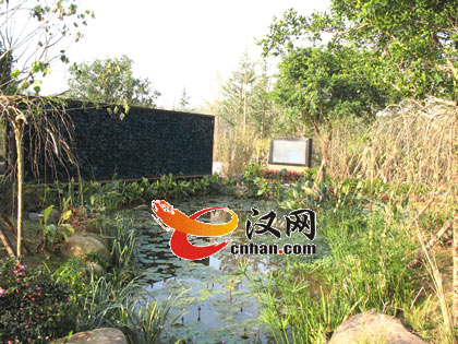 據(jù)武漢展園設(shè)計(jì)人員楊麟介紹,在武漢市舊城改造中產(chǎn)生了許多廢舊木板,均成為展園內(nèi)的棧道、步道指示牌原材料;而生活中隨處可見(jiàn)被廢棄的鐵絲網(wǎng)等,在展園內(nèi)又被做成景觀小品。另外,將碎玻璃藝術(shù)地組合到一起后,就成了園內(nèi)一塊取名為"藍(lán)色暢想"的幕墻。夜晚燈光點(diǎn)亮,碎玻璃將光線折射開(kāi)去,呈現(xiàn)出"百湖之市"武漢的城市意象。園內(nèi)有一處雨水收集系統(tǒng),通過(guò)在綠地布置盲溝,設(shè)置雨水收集池,最大限度地減少對(duì)自來(lái)水的使用。收集來(lái)的雨水還可用作溪流、灌溉等,使全園水資源循環(huán)利用。