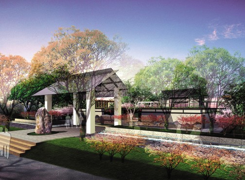 在"科技內(nèi)江"展示區(qū),主入口區(qū)設(shè)置主題展館"太白樓",展示內(nèi)江的科技、文化,展館兩側(cè)設(shè)置休閑廊架,讓游人休憩其中,并在其中設(shè)置觀賞庭院,在庭院內(nèi)設(shè)置山水景觀,并搭配四季植物,以達到"春意早臨花爭艷,夏季濃蔭好乘涼,秋季多變看葉果,冬季蒼翠不蕭條"的效果。