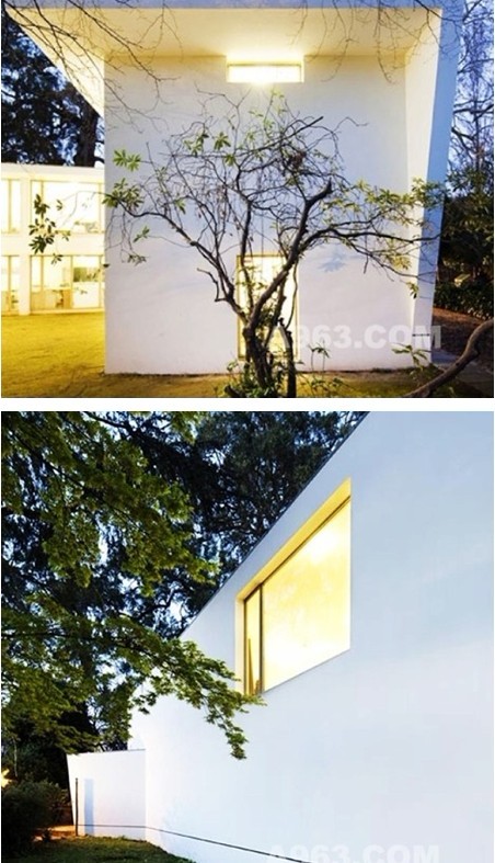 作為院子設計中一處較為簡潔明了的設計,這個亭子位于原有建筑區域的最高點,與主任辦公室相對。由于外部墻壁幾近消失,內部院子的高度得到了一定的提升。從各個房間內所欣賞到的呈一定角度的風景,將亭子與周圍的環境聯系起來,此外,這里還可以欣賞到杜羅河三角洲的迷人風景。在亭子的四周由服務和休閑中心。錐形的樓梯從第一層一直延伸到第二層,隨即消失在陽臺彎曲的邊線當中。