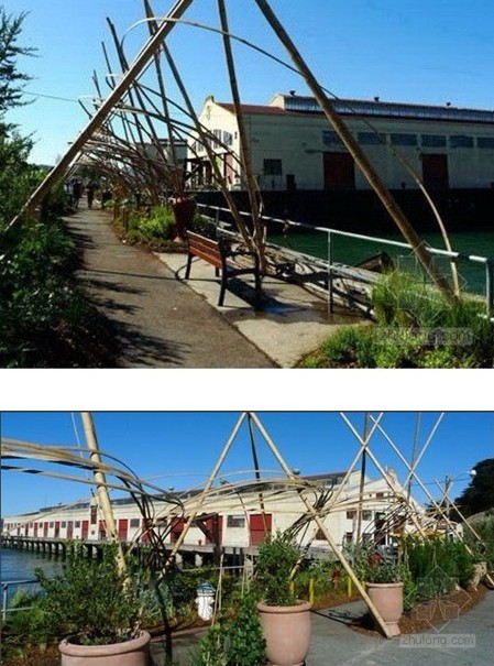 如果你上周末在WestCoastGreen的話,你就會明顯注意到沿著水邊排布的一系列優(yōu)雅的竹子結(jié)構(gòu),它們由美麗的自然景觀環(huán)繞;但你可能沒有留意的是,這些結(jié)構(gòu)實際上是用來支撐沼澤草的懸浮花園,還是預(yù)防和修復(fù)雨水徑流的一種策略。