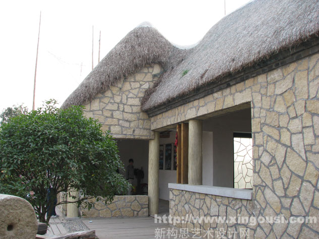 據(jù)展園設(shè)計(jì)人員介紹,茅草石屋"來頭"不小,它的原型取自膠東生態(tài)民居,又名"海草屋"。海草屋用海里的大葉藻做屋頂,石頭做墻體,海草干了之后柔軟蓬松,與石頭墻體相映成趣,整個(gè)制作采用民間手工技術(shù),工序達(dá)70余道。整座屋子冬暖夏涼,且完全生態(tài),是膠東沿海特有的生態(tài)民居,據(jù)說只有威海的苫匠才有這門手藝。
