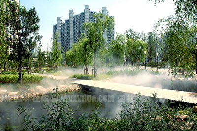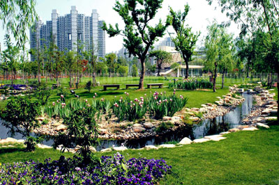 潔凈的水體、茂密的植被、舒適的場所是我們在該項目中所追求的最佳景觀環境。一系列的凈化水道,用直觀、自然、藝術的方式告訴人們水體“復活”的過程。核心區大量建設生態效益高的復層式混交林,喬木、灌木、草本植物的穿插運用,在高強度開發的城市中心區域增加一片濃綠。在綠化種植設計方面,考慮到植物多樣性原則和適地適樹原則,園中共選用了160多種植物,其中包括優良的鄉土樹種和一些近年引進的新優品種。在活動休閑場所的建設中,注重生態與舒適的目的。公園在追求藝術品質的同時,亦高度重視作為工程技術的可操作性、安全性與創新性。