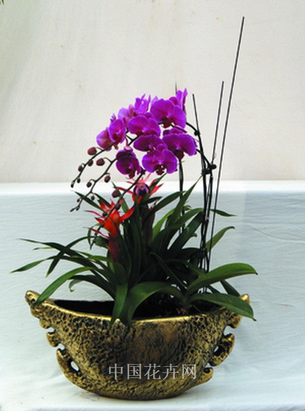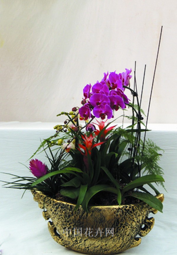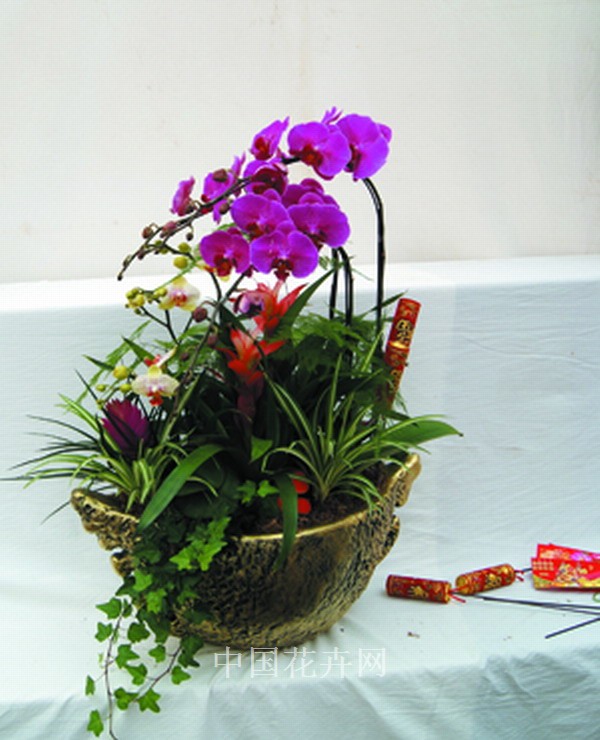 產(chǎn)品組成中,盆器需100元;大花蝴蝶蘭35元/支,需3支;迷你蝴蝶蘭25元/支,需3支;鳳梨30元/盆,需3盆;金邊蘭6元/盆;文竹6元/盆;長春藤3元/盆;另需輔助資材20元左右,包括爆竹、蘑菇、絲網(wǎng)、緞帶等裝飾品,成本總計僅需400元,市場零售價為600元以上。
