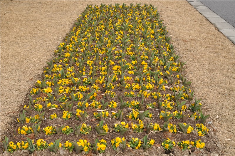 為了能讓郁金香更好的生長(zhǎng),從種植前的土壤改良、藥劑配制、品種遴選、種球消毒、種植地殺菌、滅蟲(chóng)卵的各項(xiàng)準(zhǔn)備工作,園藝工作者們投入了極大的熱情和精力,嚴(yán)格執(zhí)行了標(biāo)準(zhǔn)化,精細(xì)化的技術(shù)措施。為了豐富園區(qū)的冬季景觀面貌,在郁金香種植地上同時(shí)間種了各色的草花品種,這種混種形式也是辰山植物園首次的嘗試。