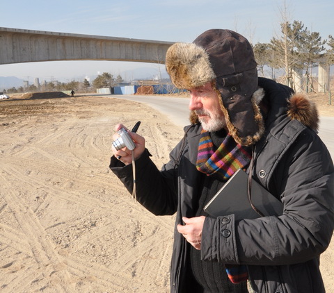 我由于要為大師準(zhǔn)備其他文案,沒去現(xiàn)場(chǎng)陪同。下午的豐臺(tái)現(xiàn)場(chǎng)勘察更是出乎所有人意料。聽現(xiàn)場(chǎng)陪同的人員講,沒想到拉茨先生如此認(rèn)真仔細(xì)。兩點(diǎn)到的現(xiàn)場(chǎng),他就一直在寒風(fēng)徹骨、黃土飛揚(yáng)彌漫的現(xiàn)場(chǎng)走來走去,仔細(xì)勘察,不放過每一個(gè)細(xì)節(jié)。周圍的陪同人員都冷了,累了,倦了,他還在不厭其煩地詢問著每一個(gè)細(xì)節(jié)、每一組數(shù)據(jù)。一直到將近晚上7點(diǎn),天都黑了,他才帶著滿腦子的疑問,戀戀不舍地離開了豐臺(tái)現(xiàn)場(chǎng)。