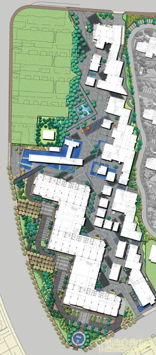 中國風景園林網訊 海上海景觀設計由上海易格總裁馬曉偉設計。本項目鄰近上海北外灘開發區,本地塊及周邊區域工業文化底蘊深厚,這不僅是楊浦區的特色,也是該項目的設計主題之一。設計者通過現代造景手法將文化氛圍導入園區環境,原有的廠房基地由不同的鋪裝肌理表現出來,將海派文化及其歷史演變直接呈現在景觀環境當中。使人們通過與景觀元素的直接接觸,感受到歷史的變遷以及所屬地域特有的歷史文化魅力。