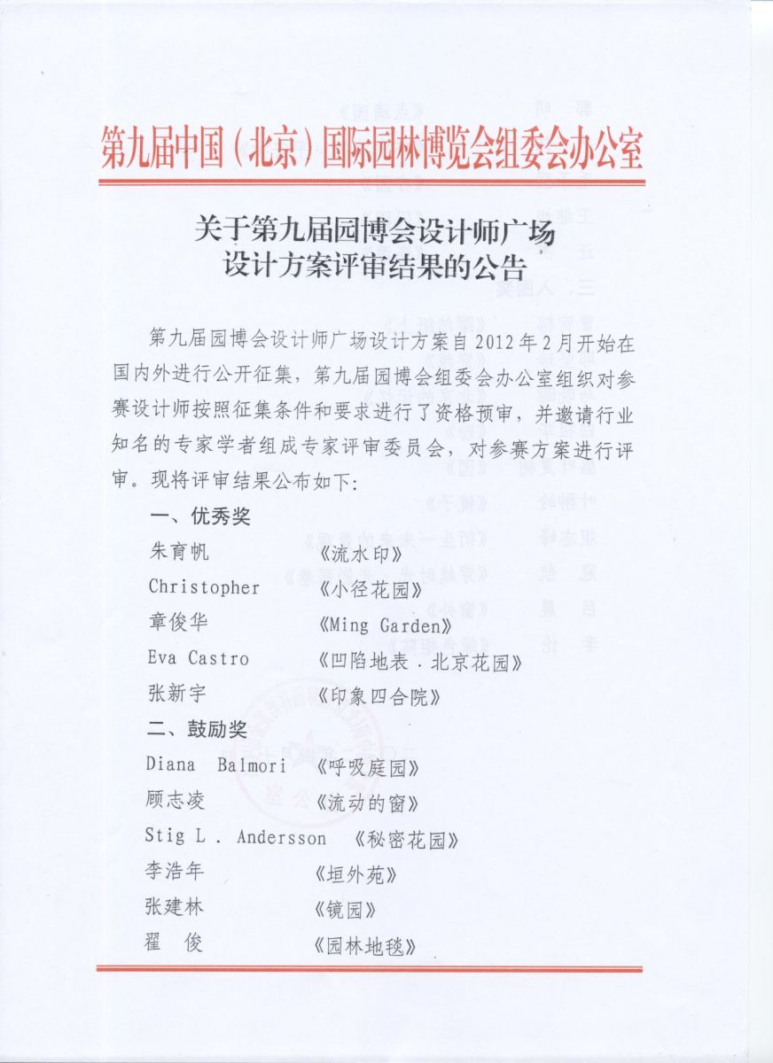 關(guān)于第九屆園博會設(shè)計師廣場設(shè)計方案評審結(jié)果的公告