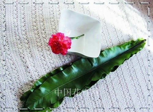 這款居家小品的特點是利用植物(山蘇)本身的特點作為小品的主題表現。山蘇波浪狀卷曲的邊緣,獨具風格。將它們一層層疊加起來,像盛開的花朵,卷曲的葉邊仿若綻放的花瓣。
