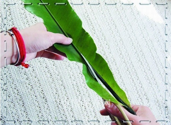 步驟二:順著山蘇中間的葉脈將左右兩側的葉子剪下了