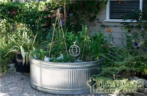 試著用鍍鋅板材質作藥草和可食用植物的花盆壁。這種材質價格低廉,而且還可以阻擋打地鼠、兔子或蛇等小動物。