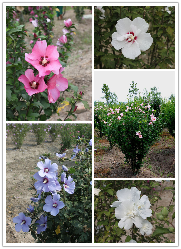 位于辰山北側綠環外的引種苗圃開放區,大片種植著木槿的不同品種,包括‘白綢’、‘粉紅’、‘紅心’、‘海琳’、‘戴安娜’、‘玫瑰紅’、‘哈馬布’、‘阿佛絡狄’、 ‘俄羅斯紫羅蘭’等品種,現在陸續進入了花期,被稱之為花的海洋也不為過:熱情似火的紅、粉嫩可愛的粉、純潔無暇的白、清新爽氣的藍,花瓣有單瓣、重瓣;花色還有純色、混色,讓人領略到無與倫比的視覺享受。