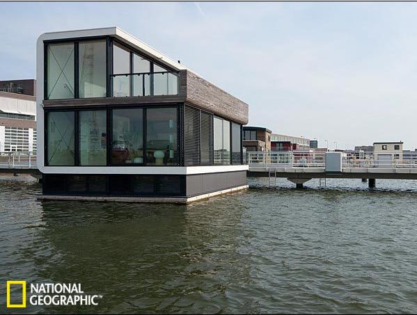 一位荷蘭設(shè)計(jì)師設(shè)計(jì)了這款浮動(dòng)房屋,一種單戶(hù)家庭形式的水上別墅,從而達(dá)到最大的私密性和多用途要求。這款設(shè)計(jì)完成于2008年,這座建筑的臥室和浴室位于第一層,部分被水面淹沒(méi)。頂層寬闊的移門(mén)外是一個(gè)寬闊的木質(zhì)涼臺(tái),讓人感覺(jué)就像是在一艘船上。