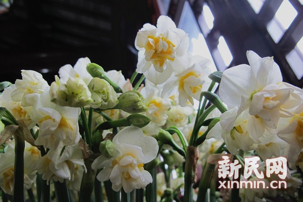 圖說:崇明水仙花具有形美、花香濃、花箭挺、花苞多、不需雕刻的五大優點。新民網記者 袁蓉 攝
