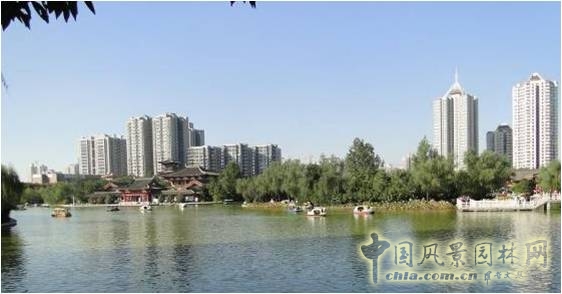 位于公園中部吉祥湖景區,形成公園植物景觀又一特色。 。濱水片植觀賞喬木為背景,前景配以叢植花木,襯以草坪,簡潔明快、富于韻律感。湖心島綠地借鑒中國傳統園林植物配植手法,點植油松、箬竹、海棠、玉蘭、紅楓、牡丹等傳統名貴花木,營造清新典雅的環境氣氛。湖區水域沿岸配植水生花卉,花木掩映之中更現天光水影,自然、疏落、野趣盎然。